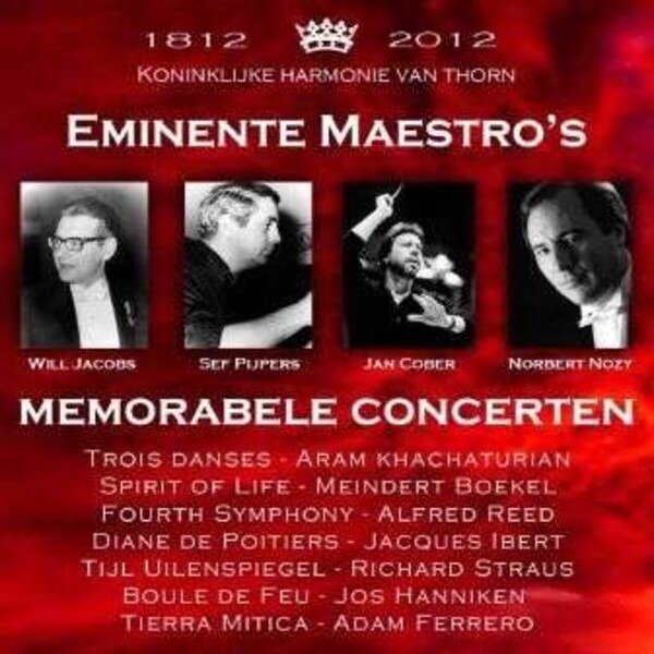 Anniversary CD with compositions, which the Royal Symphonic Band of Thorn has created a furore the last fifty years, led by the eminent conductors Will Jacobs (1967-1970), Sef Pijpers (1959-1963 & 1971-1983), Jan Cober (1983-2003) and Norbert Nozy (from 2004).Cd 1:1. Diane de Poitiers - Jacques Ibert (1890-1962), arr. Dupont 10’138 december 1968Trois danses - Aram Khachaturian (1903-1978), arr. Ardenois 10’19 2. De dans van de bloemenmeisjes 3’59 3. Mascarade 2’52 4. Gopak 3’2813 december 19685. Boule de feu - Jos Hanniken (1912-1998) 9’4424 augustus 1962 – WMC Kerkrade6. Spirit of life - Meindert Boekel (1915-1989) 11’1621 maart 1973 – Bondsconcours IttervoortCd 2:1. Fuga uit : Schwanda the bagpiper - Jaromir Weinberger (1896-1967) 5’5520 november 1988 – Bondsconcours Rodahal Kerkrade2. 4th Symphony - Alfred Reed (1921-2005) 17’04a. Elegy - b. Intermezzo - c. Tarantella25 juli 1993 – WMC Kerkrade3. Till Eulenspiegel - Richard Strauss (1864-1949), arr. Carlier 15’4320 juli 1997 – WMC Kerkrade4. Overture on Russian and Khirgiz folksongs - Dmitri Shostakovich (1906-1975) 9’5627 november 2005 – Orangerie RoermondTierra Mitica - Bernardo Adam Ferrero (1942) 18’035. Arco Mediterraneo (Mediterrane boog) 5’196. Nocturno y danza en las noches de plenilunio (Nocturne en dans in de nachten met volle maan) 3’187. El Mar (De Zee) 3’188. La tierra bendecida (De gewijde aarde) 5’1719 oktober 2008 – Bondsconcours De Maaspoort Venlo9. Slava - Leonard Bernstein (1918-1990) 3’4119 oktober 2008 – Bondsconcours De Maaspoort Venlo